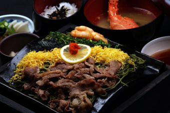 牛肉、錦糸玉子、ネギ、海苔のほか、